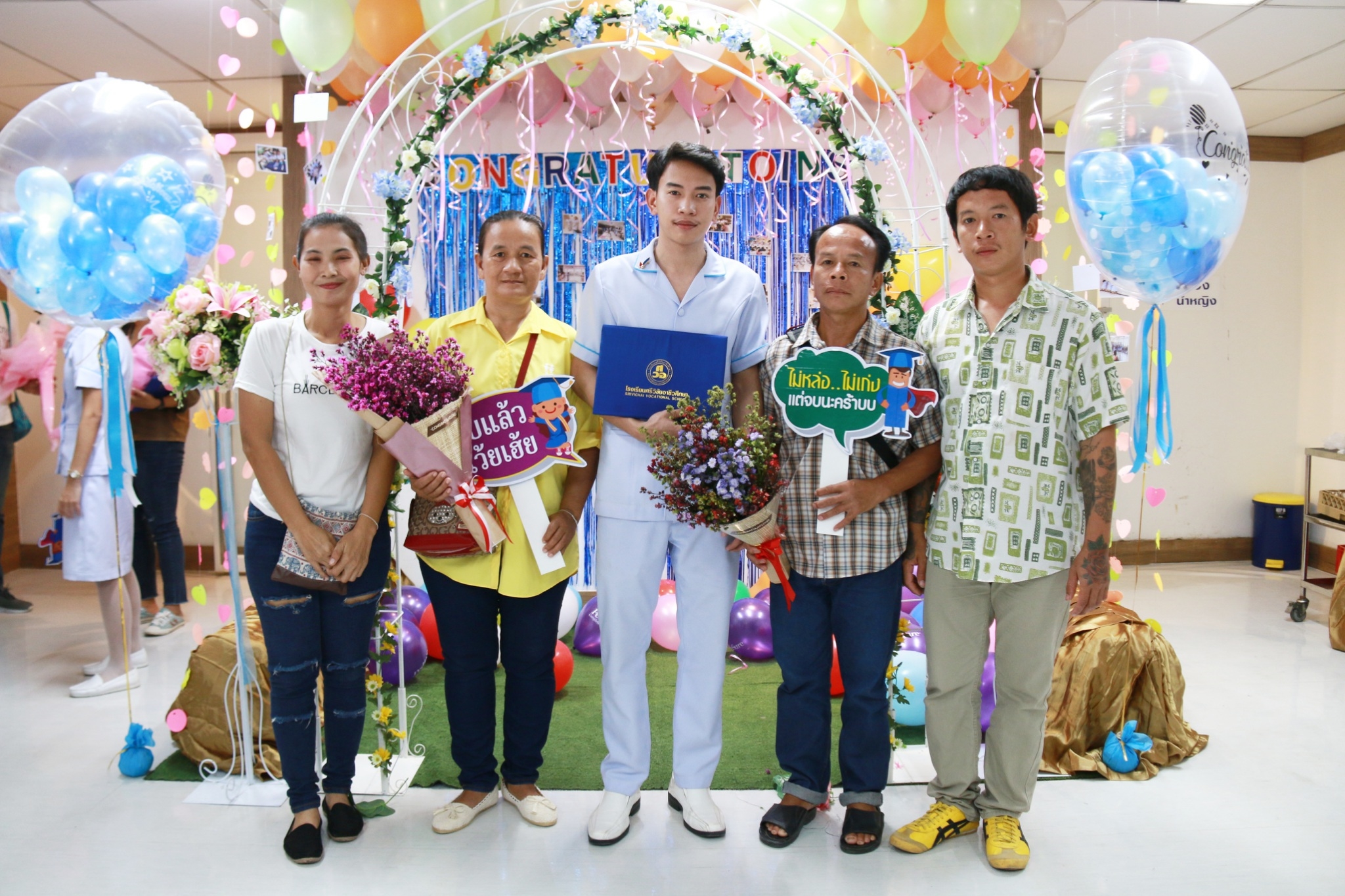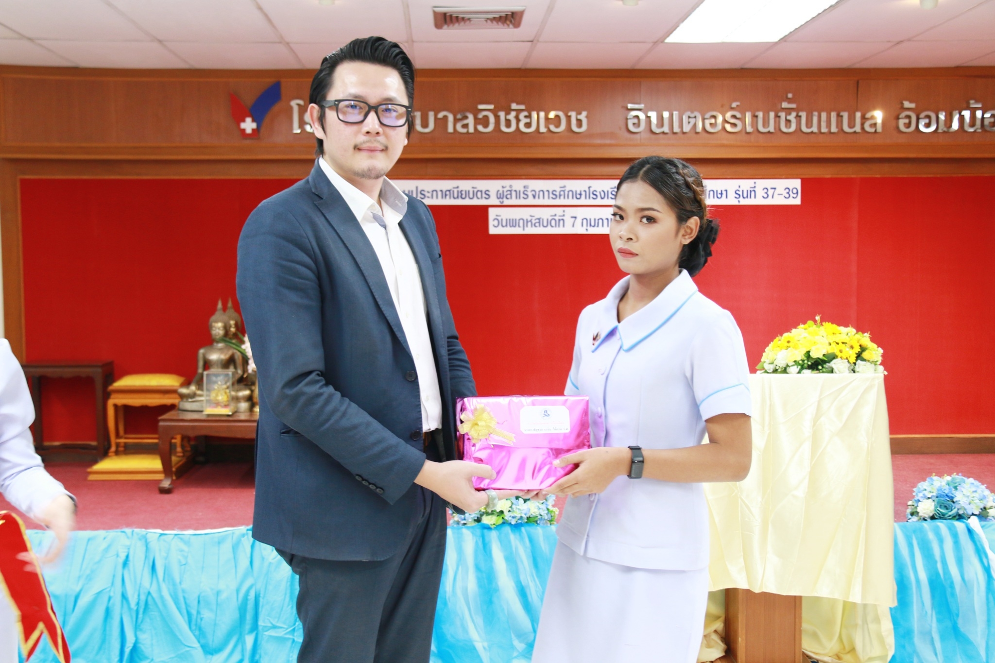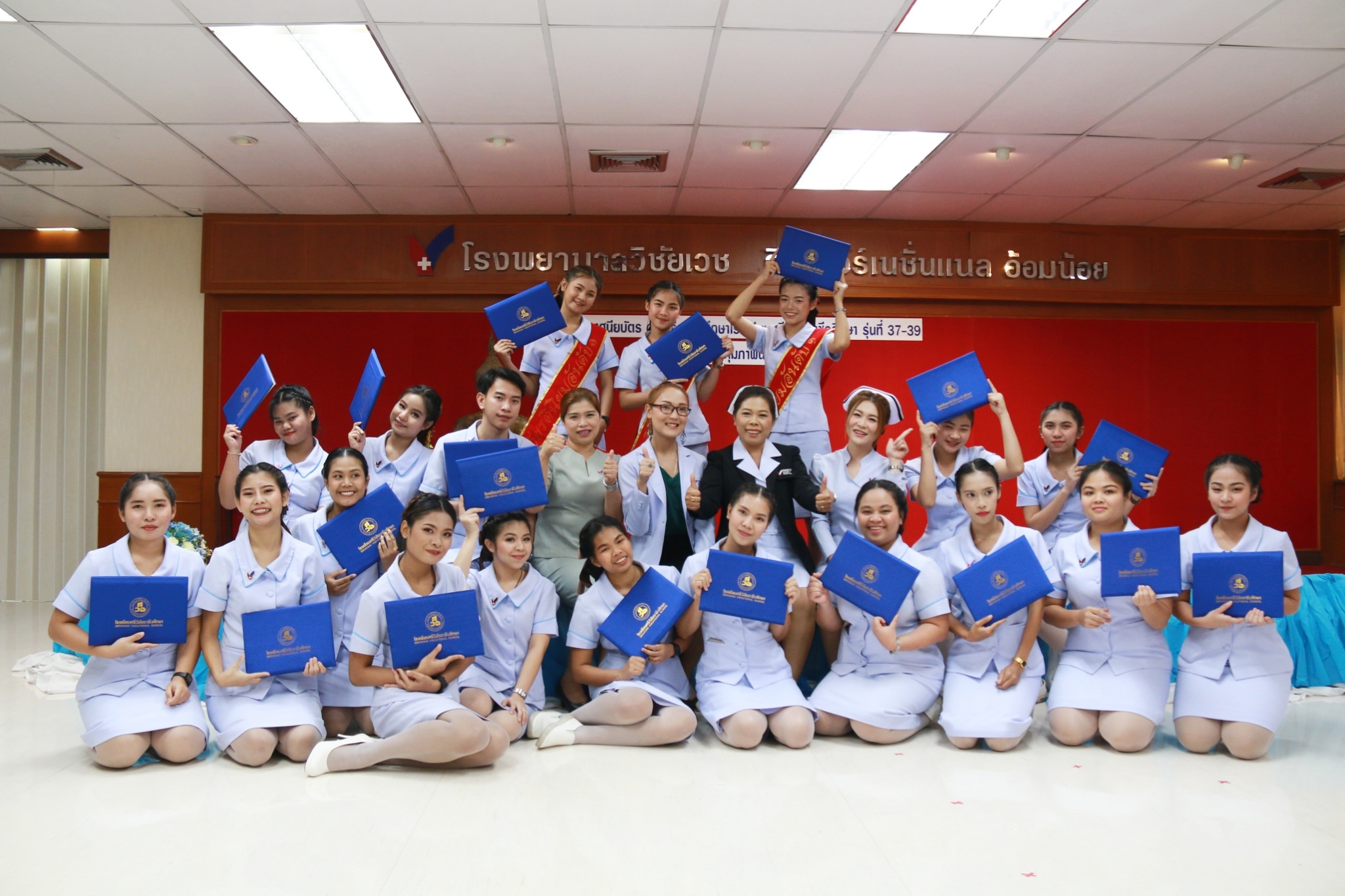 นพ.พงษ์ศักดิ์ วัฒนา ประธานกรรมการบริหารโรงเรียนศรีวิชัยอาชีวศึกษา เป็นประธานในพิธีมอบประกาศนียบัตรแก่ผู้สำเร็จการศึกษา หลักสูตรการดูแลเด็กเล็กและผู้สูงอายุ [ NA] รุ่นที่ 37, 38 และ 39 ในวันที่ 7 กุมภาพันธ์ 2562 ณ ห้องประชุมขวัญเมือง อาคาร 1 ชั้น 7 โรงพยาบาลวิชัยเวช อินเตอร์เนชันแนล อ้อมน้อย จ.สมุทรสาคร